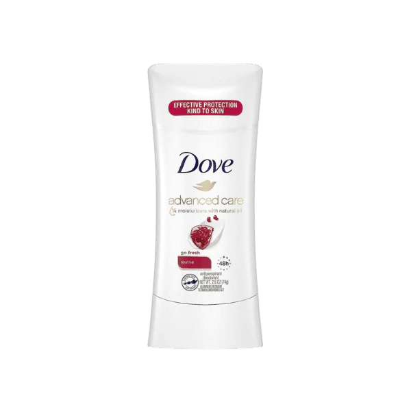 Dove Advanced Care Revive Deodorant is designed for women who want long-lasting underarm protection along with gentle skin care. It offers sweat and odor control while nourishing underarm skin, leaving it soft, smooth, and refreshed. The deodorant features a fresh, uplifting fragrance with hints of pomegranate and lemon verbena.