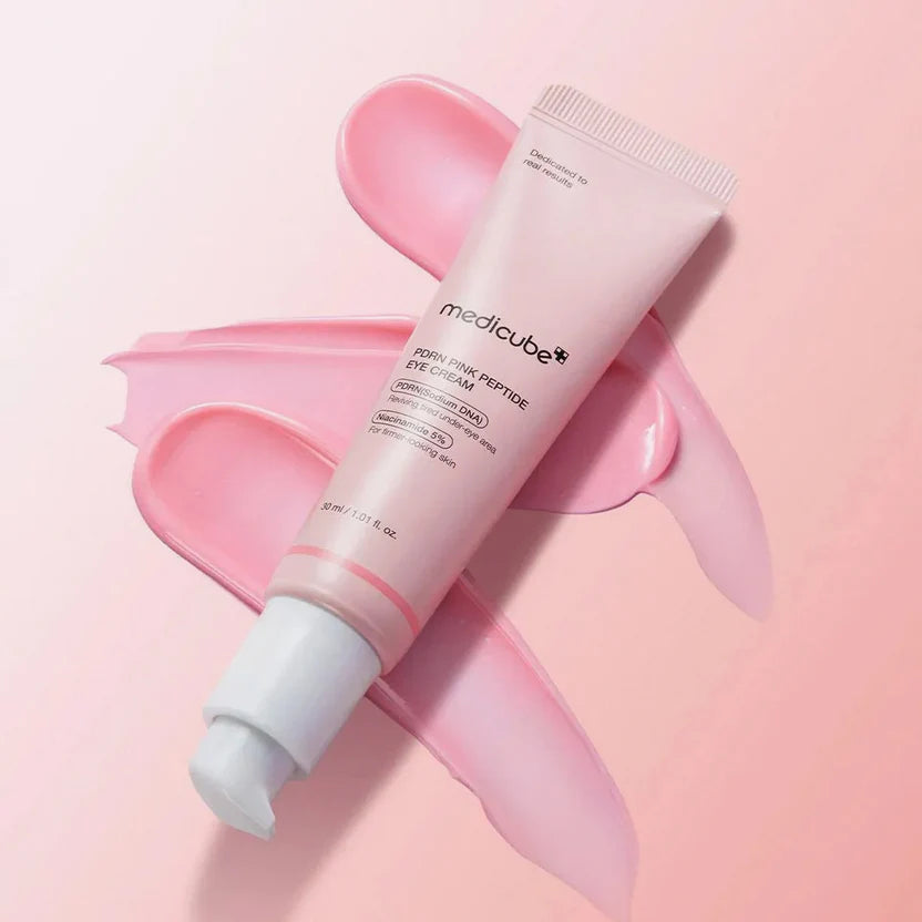 Medicube PDRN Pink Peptide Eye Cream (30ml) is a targeted anti-aging treatment designed to brighten, firm, and rejuvenate the delicate under-eye area. Infused with PDRN for deep repair and multiple Peptides for elasticity, this silky eye cream helps reduce the appearance of fine lines, dark circles, and puffiness. Its lightweight texture absorbs quickly without heaviness, leaving the skin refreshed, smooth, and naturally lifted.